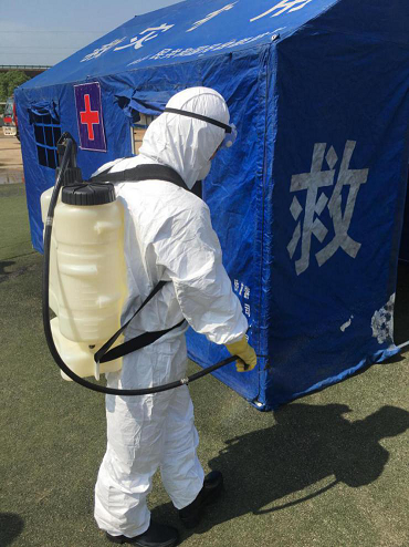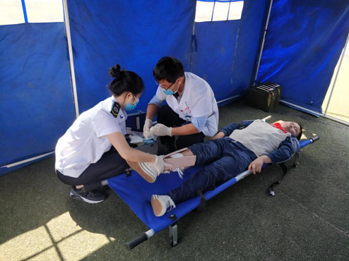 模拟地震发生后,现场模拟处置了一处学校发生房屋倒塌,并发生火灾,消防人员进场进行被困人员搜索救援,救援完成后开始进行灭火演练。医疗救护人员携带救援设备,将病员按照伤情程度进行分类,分别实施救治,卫生防疫人员对债后现场进行消毒杀菌,确保灾区不会爆发疫情。