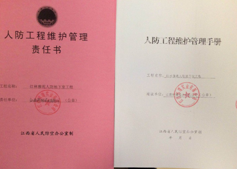 新建区人防办认真贯彻省办赣人防发(2018)10号文件精神,进一步加强该区人防工程维护管理,落实维护管理责任,确保人防工程战时防护效能有效发挥。自2018年5月1日起,该区内新建人防工程在竣工验收备案时,一律要求人防工程维护、管理、使用单位与该办签订《人防工程维护管理责任书》,并要求建设单位编制《人防工程维护管理手册》报审。5月11日,红林雅苑建设单位报送的《人防工程维护管理手册》审查合格,该办随即与人防工程维管单位签订了《人防工程维护管理责任书》,新举措为进一步规范该区人防工程维护管理落到了实处。